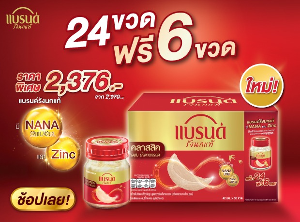 แบรนด์รังนกแท้ 26 ขวด ฟรี 4 ขวด ราคาพิเศษ 2,376.-